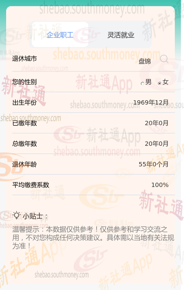 1、基础养老金计算公式=盘锦养老金计发基数×(1+平均缴费指数)÷2×缴费年限×1%。