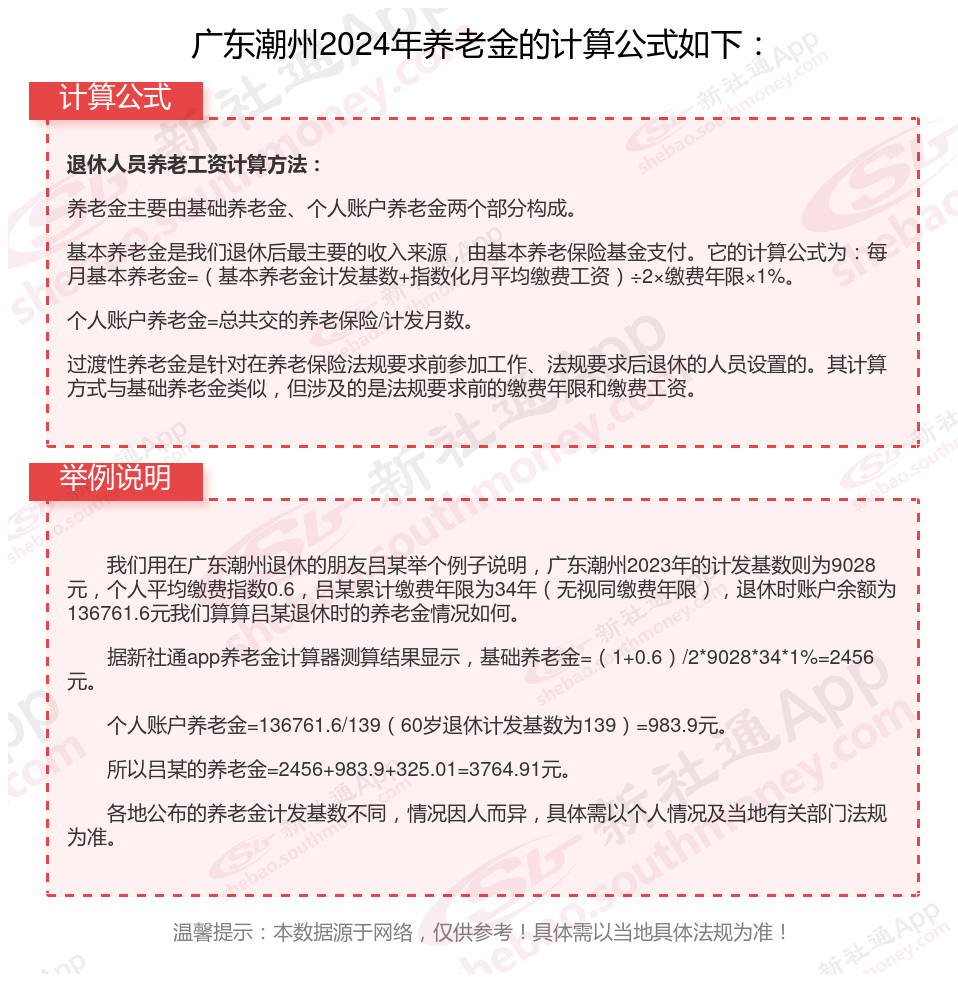广东潮州退休工资养老金计算方法及公式2024年最新(举例说明)