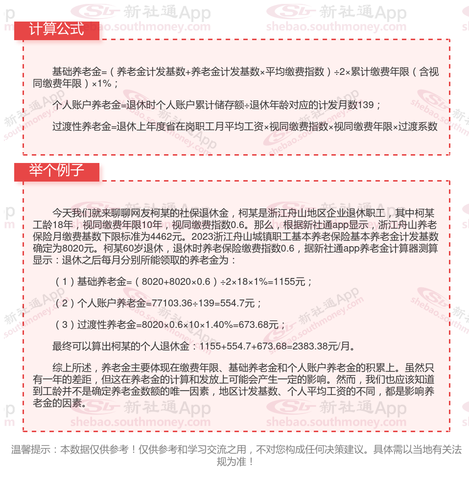 浙江舟山退休工资养老金计算方法及公式2024年最新(举例说明)