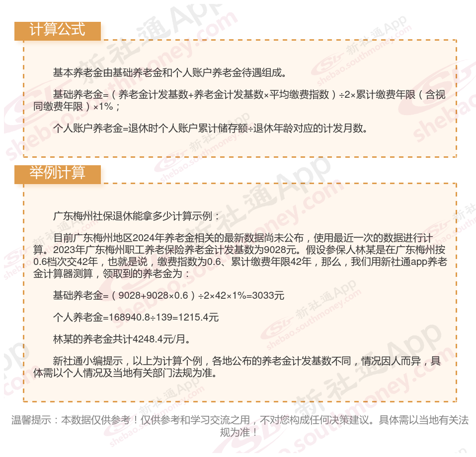 广东梅州退休工资养老金计算方法及公式2024年最新(举例说明)