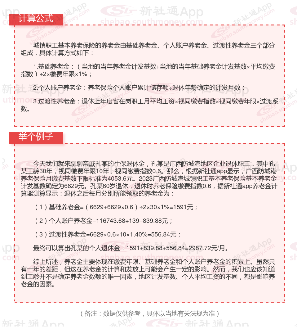 广西防城港退休工资养老金计算方法及公式2024年最新(举例说明)