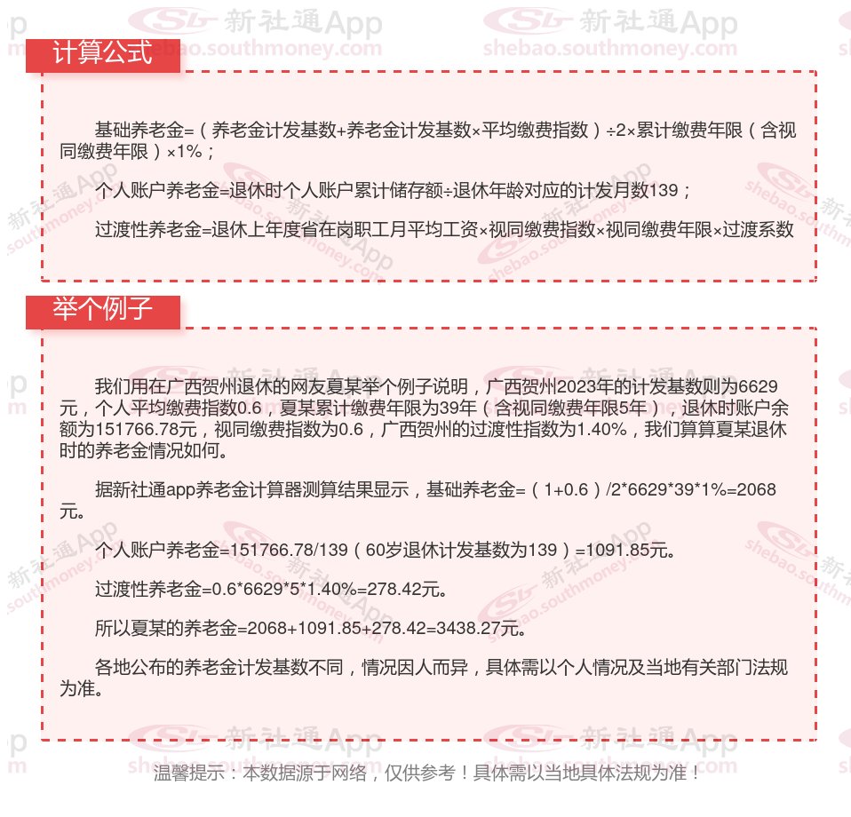 广西贺州退休工资养老金计算方法及公式2024年最新(举例说明)