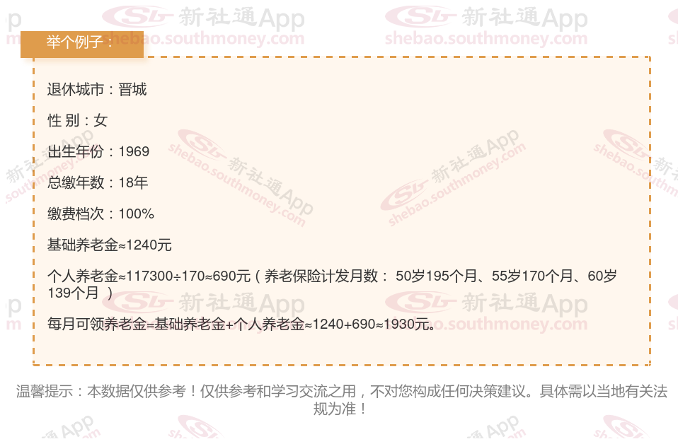 因此,王某预计每月可领取的养老金总额为基础养老金与个人养老金之和,即1240元 +690元 = 1930元。这一估算结果由新社通app养老金计算器提供。