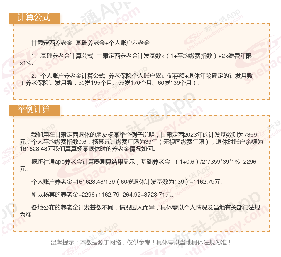 甘肃定西退休工资养老金计算方法及公式2024年最新(举例说明)
