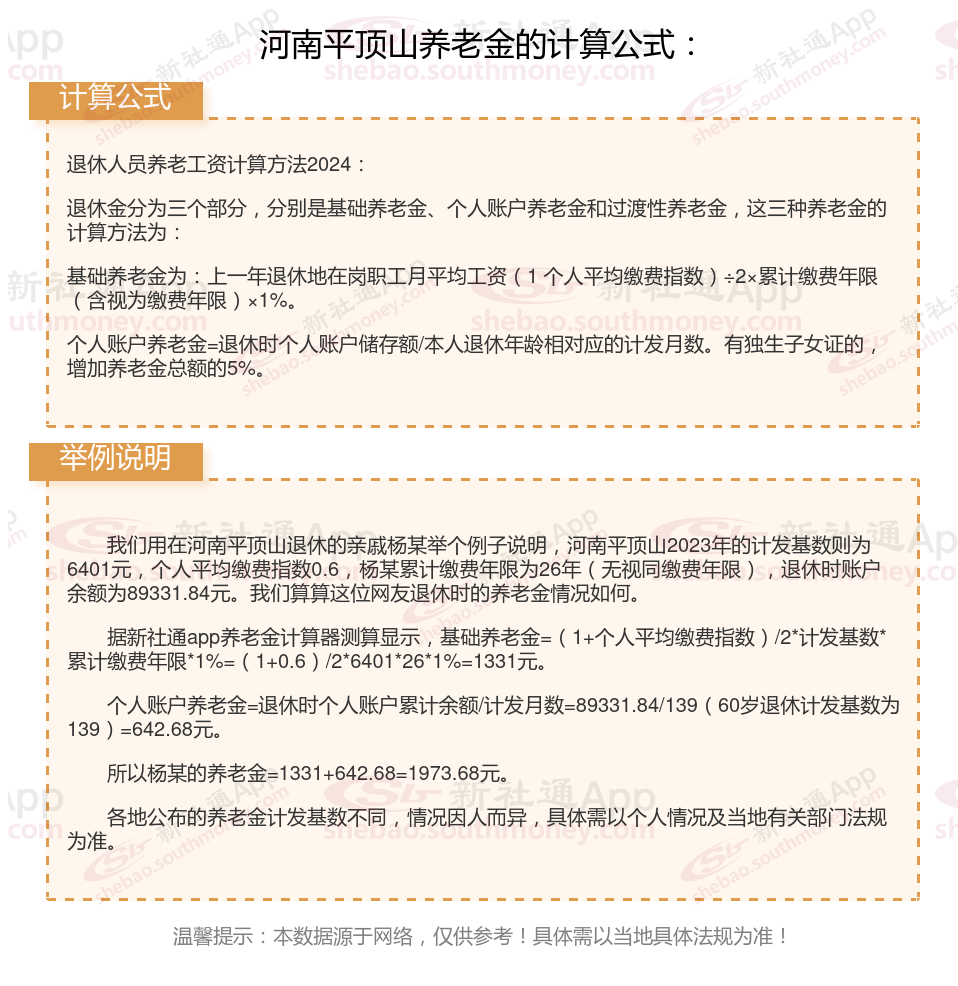 河南平顶山退休工资养老金计算方法及公式2024年最新(举例说明)