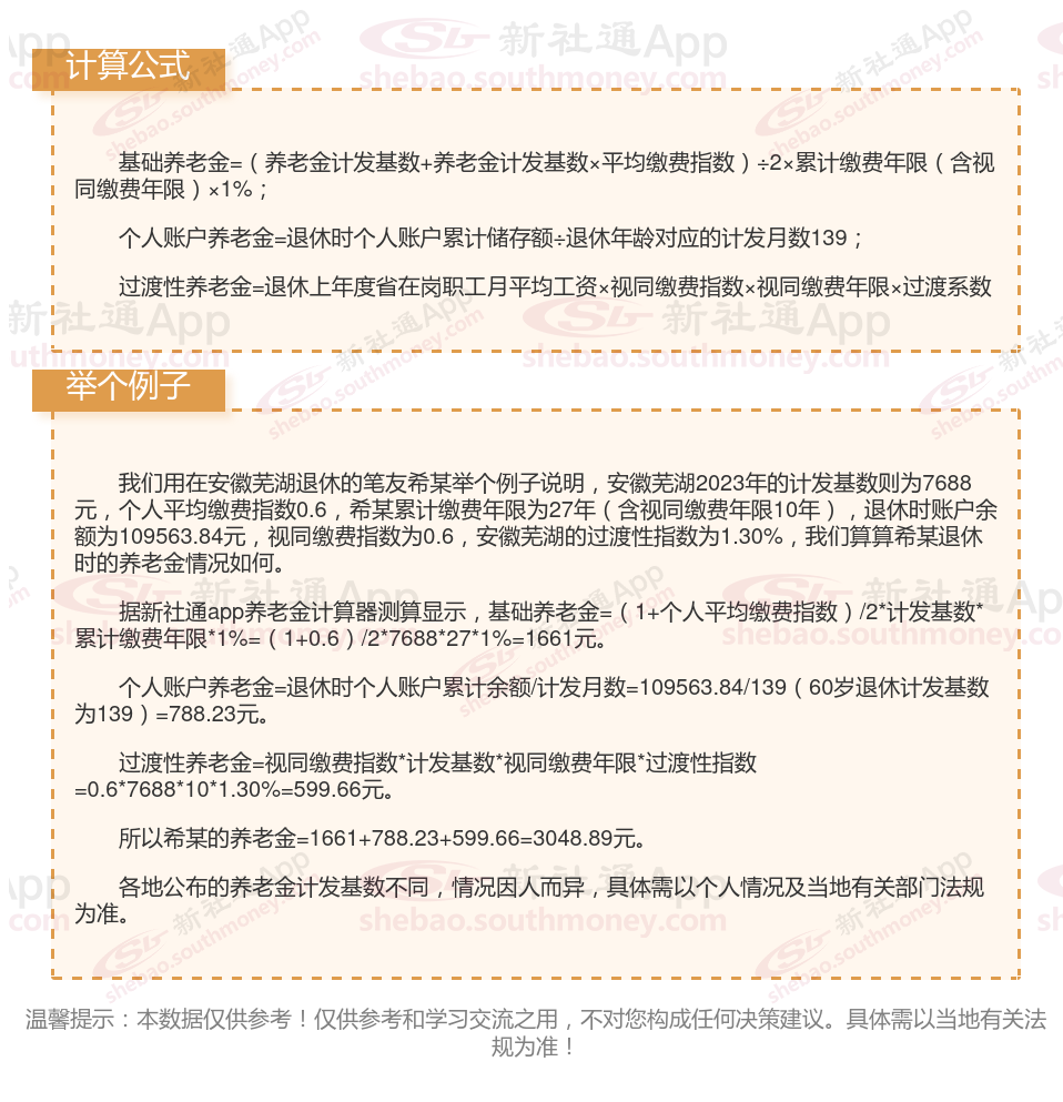 安徽芜湖退休工资养老金计算方法及公式2024年最新(举例说明)