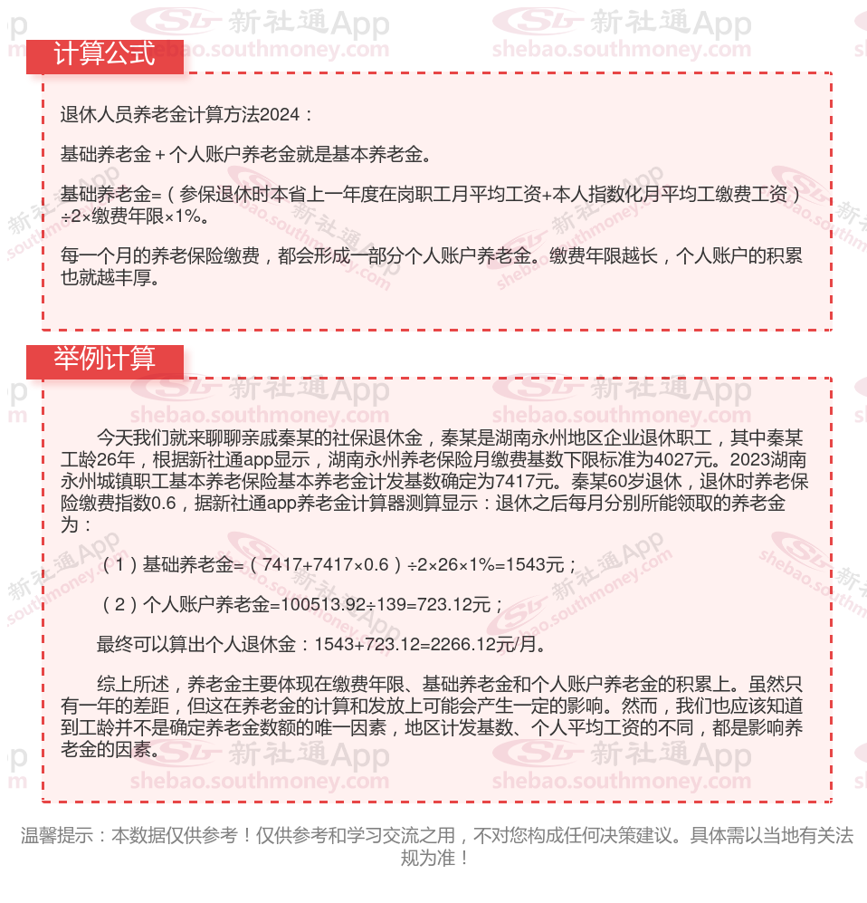 湖南永州退休工资养老金计算方法及公式2024年最新(举例说明)