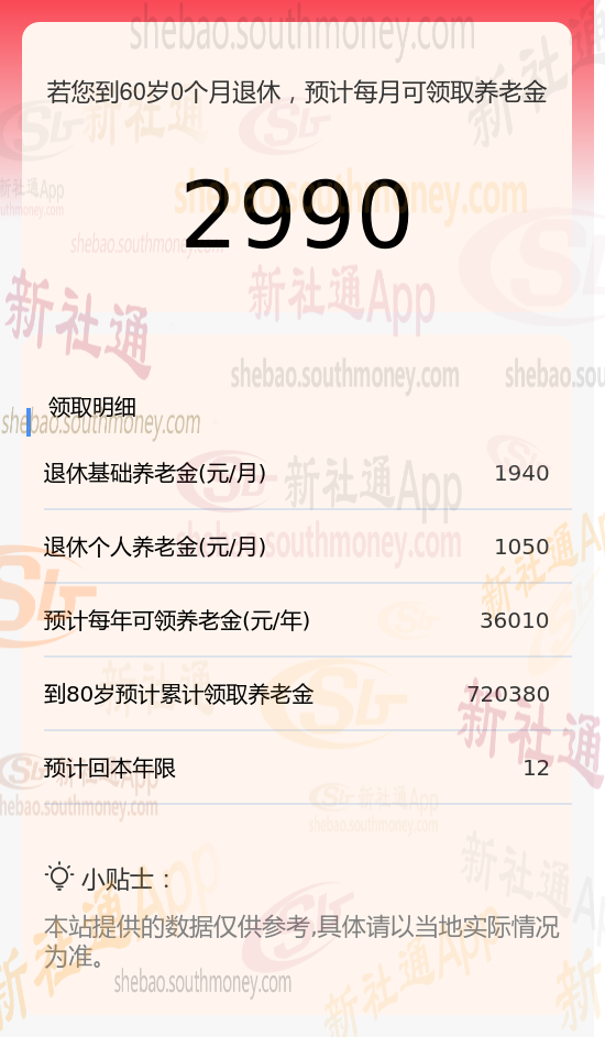 经过详细计算与审核,康某的基础养老金部分确定为每月1940元。