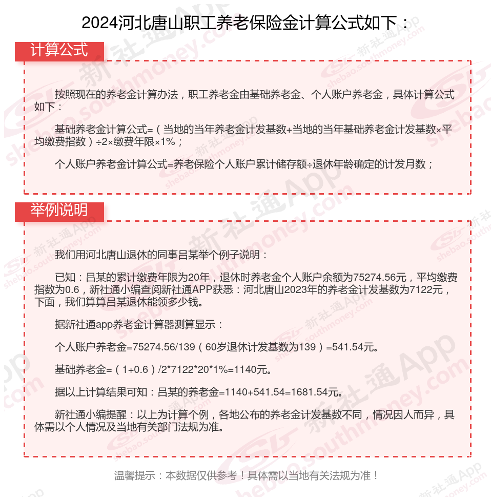 河北唐山退休工资养老金计算方法及公式2024年最新(举例说明)
