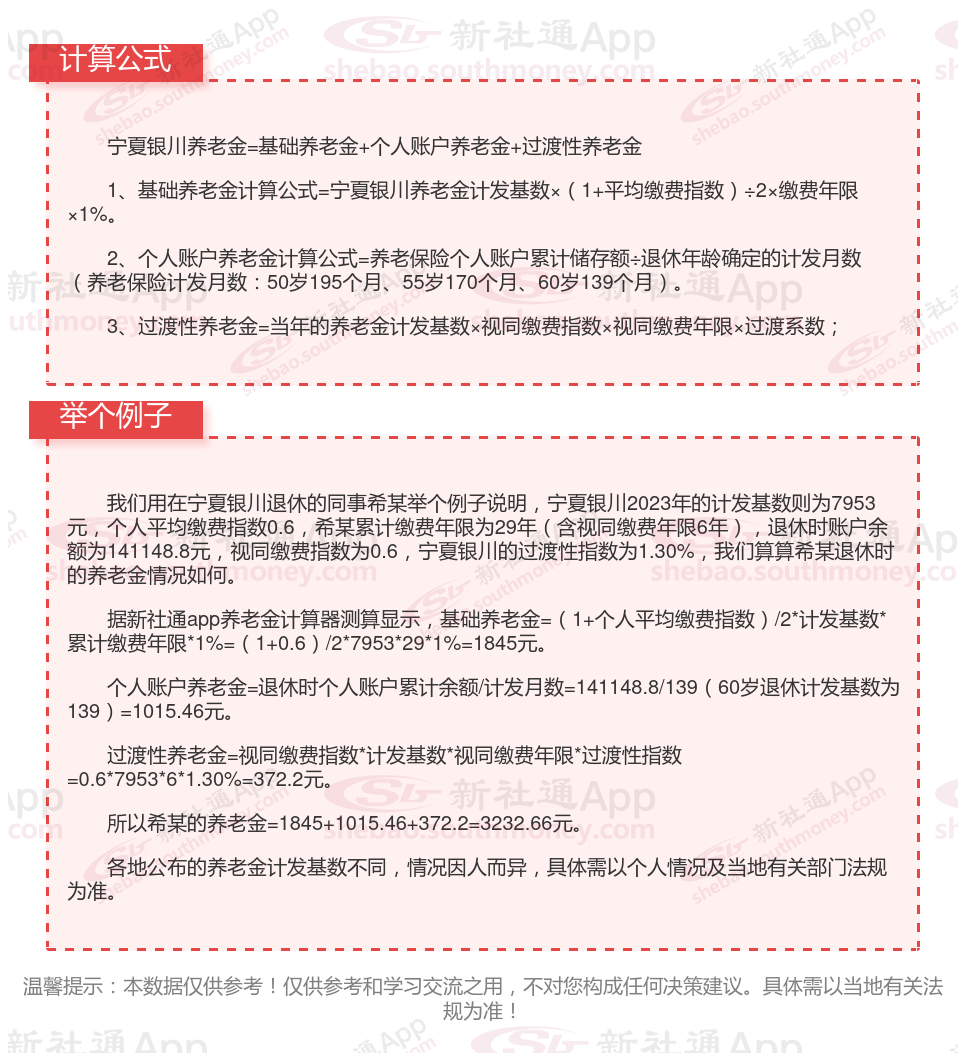 宁夏银川退休工资养老金计算方法及公式2024年最新(举例说明)