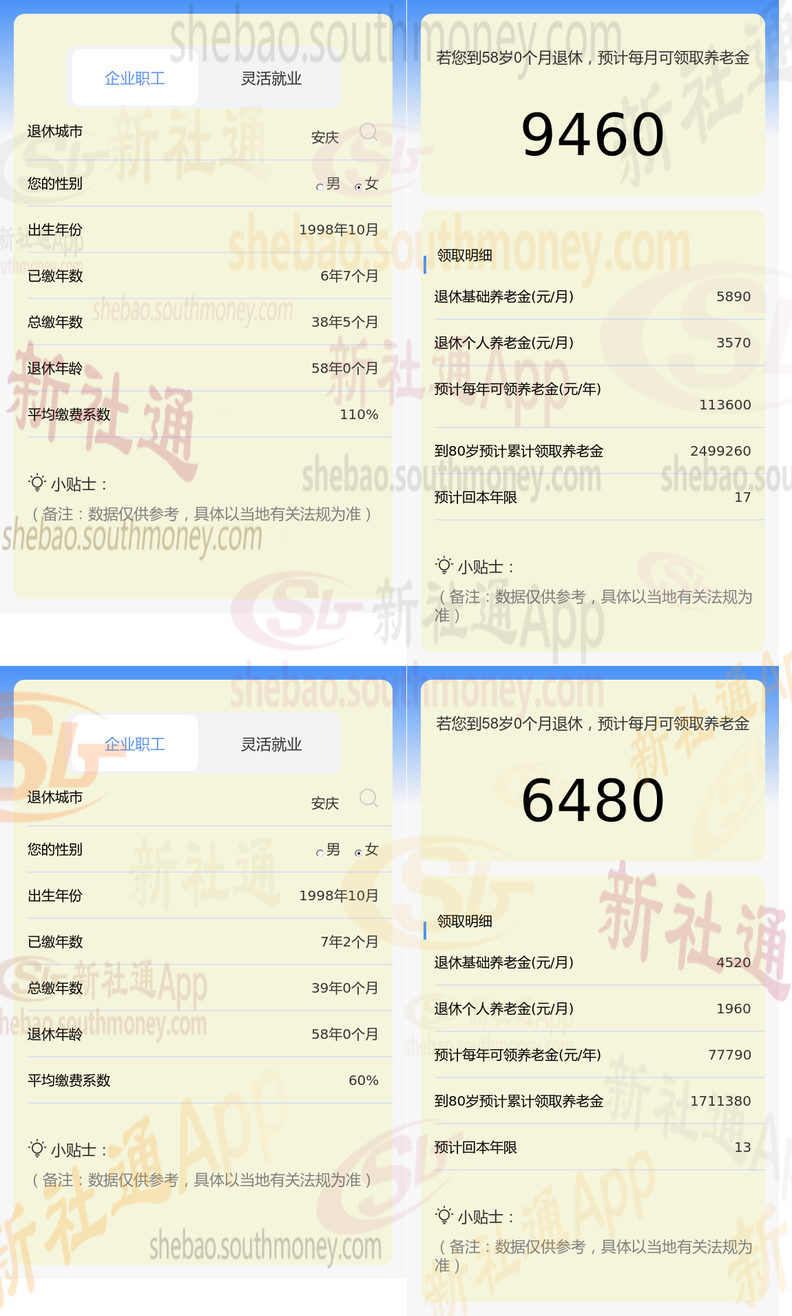 下面新社-app一起来看下,以安庆为例(不考虑过渡养老金):