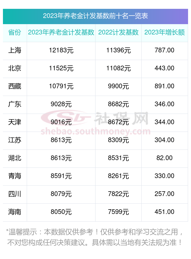 据新社通app显示,下面来看看全国各地2023年养老金计发基数一览表(前十名)