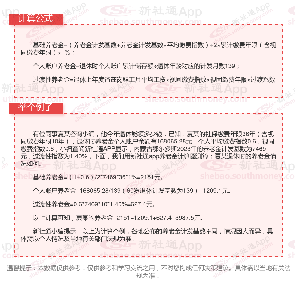 内蒙古鄂尔多斯退休工资养老金计算方法及公式2024年最新(举例说明)