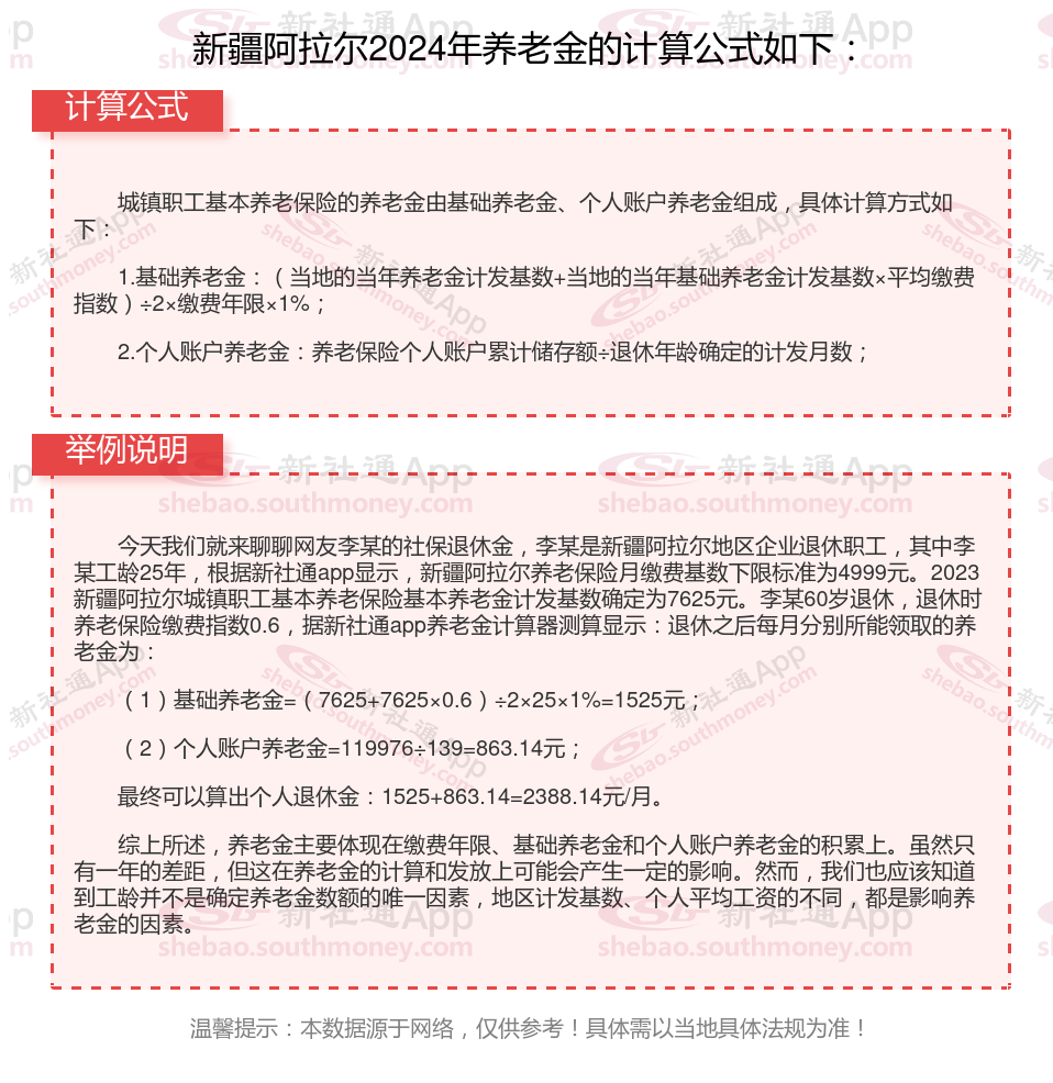 新疆阿拉尔退休工资养老金计算方法及公式2024年最新(举例说明)