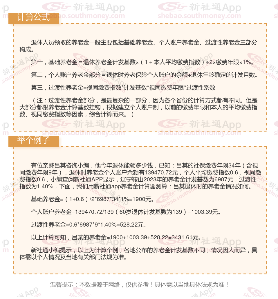辽宁鞍山退休工资养老金计算方法及公式2024年最新(举例说明)