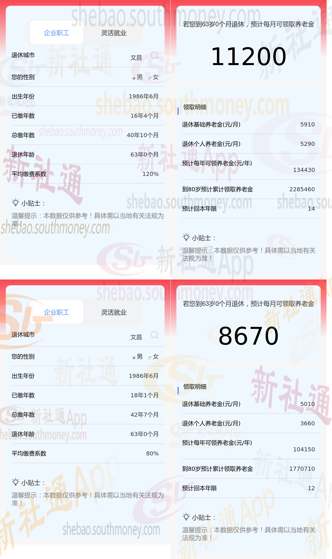 以文昌为例(不考虑过渡养老金情况下):