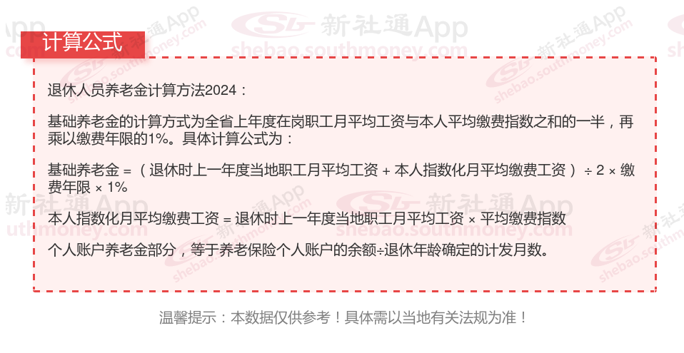 ①基础养老金部分,等于退休上年度社会平均工资×(1+本人平均缴费指数)÷2×缴费年限×1%。