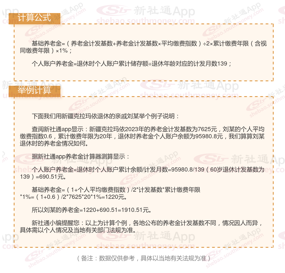 新疆克拉玛依退休工资养老金计算方法及公式2024年最新(举例说明)