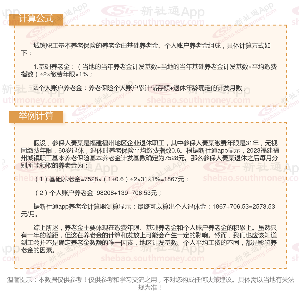 福建福州退休工资养老金计算方法及公式2024年最新(举例说明)