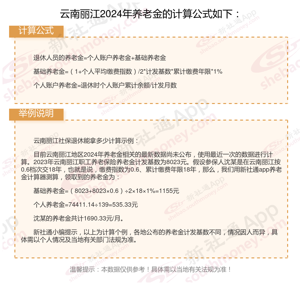 云南丽江退休工资养老金计算方法及公式2024年最新(举例说明)