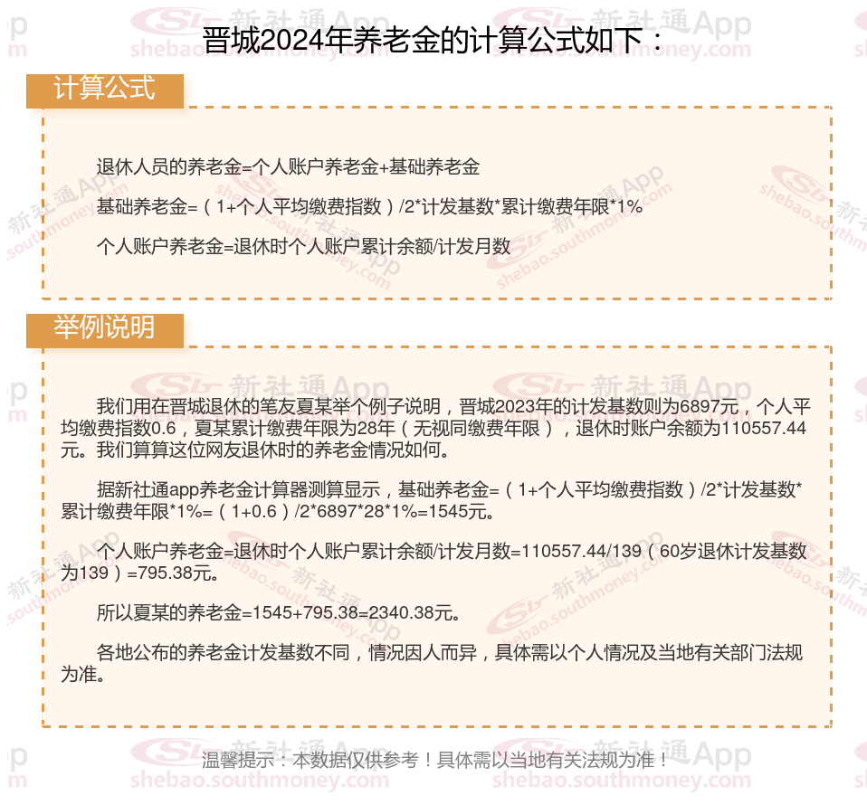 基本养老金计算公式为:(退休时上年度全市城镇单位就业人员月平均工资+本人指数化月平均缴费工资)÷2×缴费年限×1%。