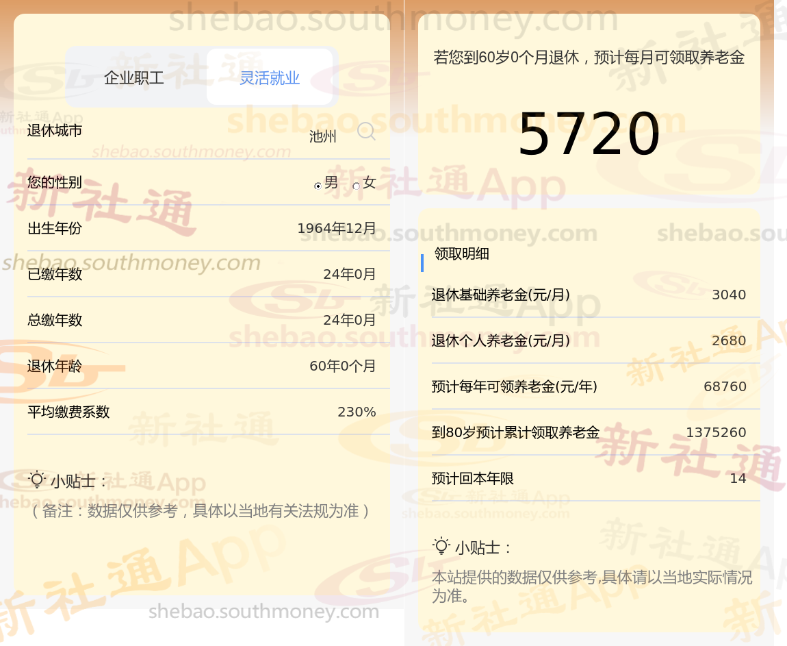 基础养老金=(全省上年度在岗职工月平均工资+本人指数化月平均缴费工资)÷2×缴费年限×1%