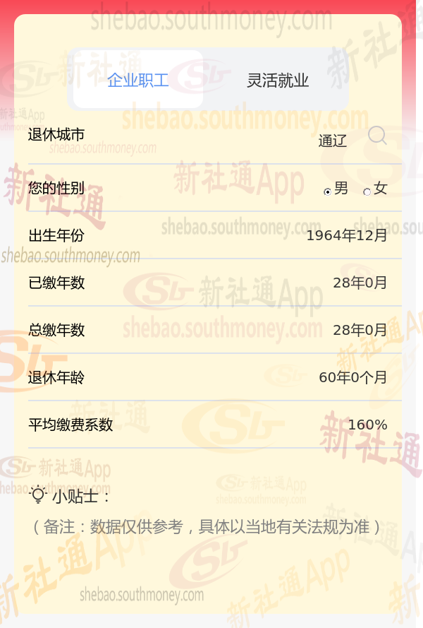 最近一位通辽退休的男性企业职工人员后台咨询,准备要退休了,工龄28年,每月按照160%档位缴纳,社保每月拿到多少钱?能领到5100元吗?