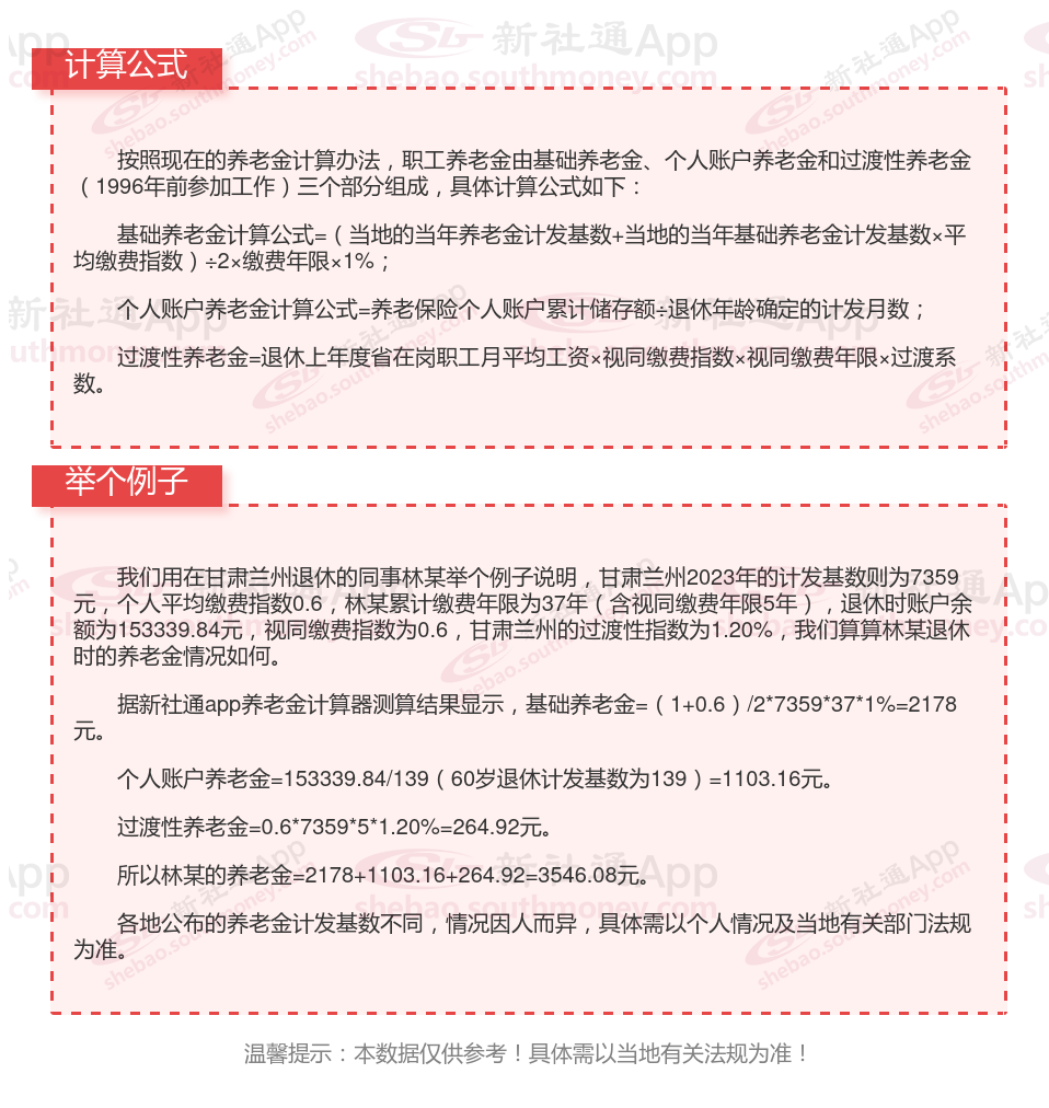 甘肃兰州退休工资养老金计算方法及公式2024年最新(举例说明)