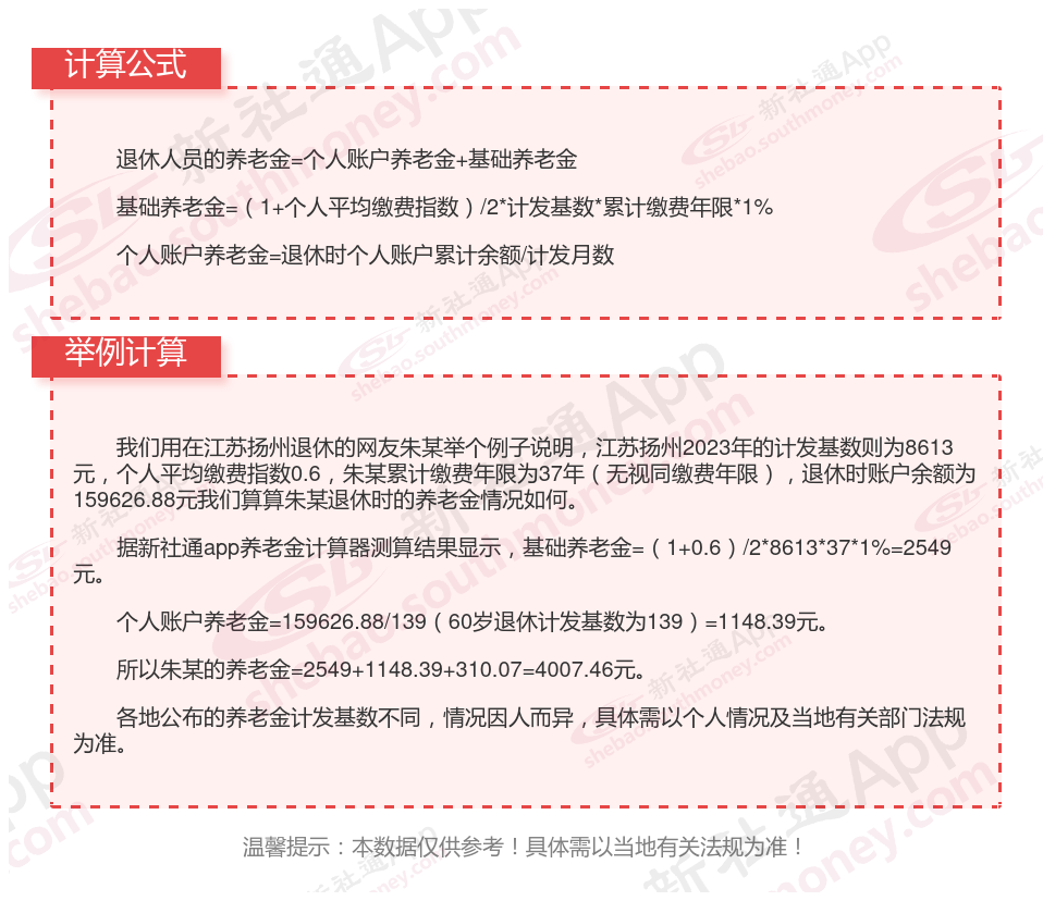 江苏扬州退休工资养老金计算方法及公式2024年最新(举例说明)