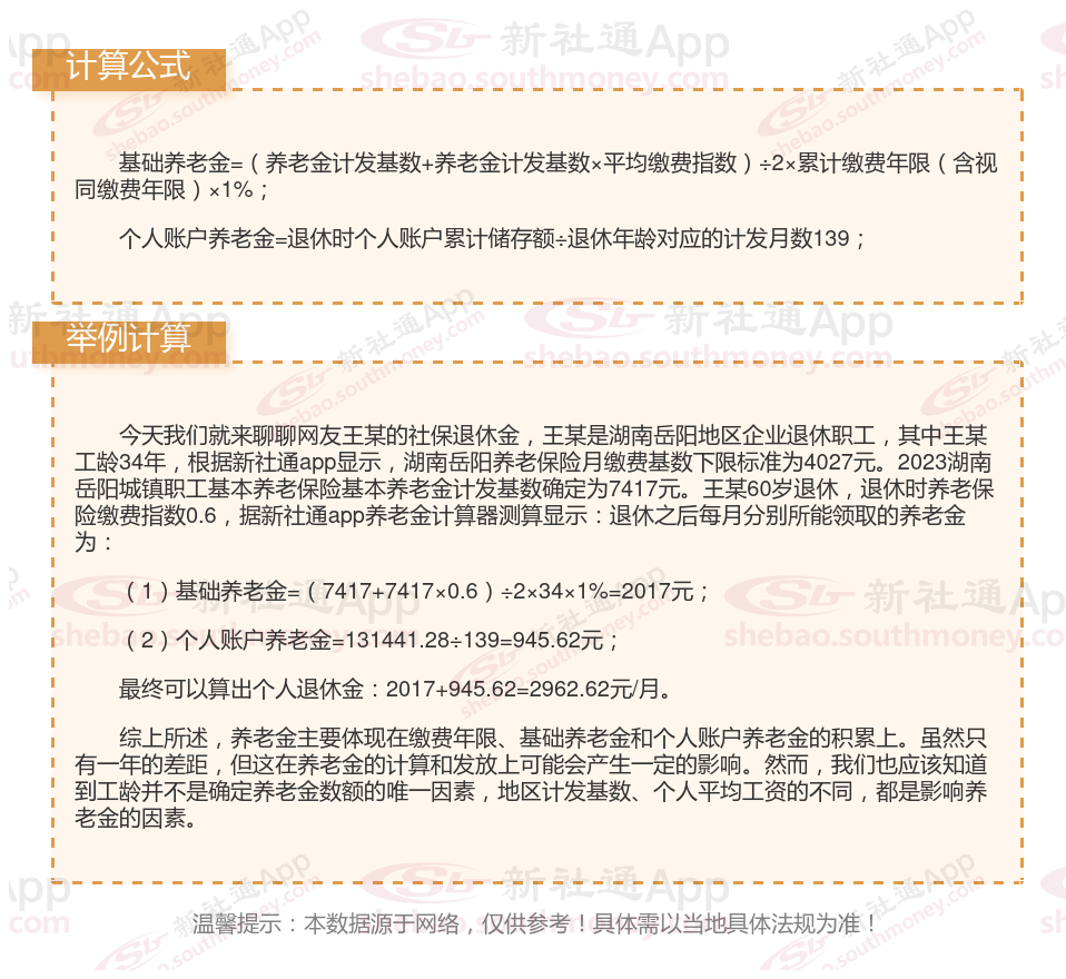 湖南岳阳退休工资养老金计算方法及公式2024年最新(举例说明)