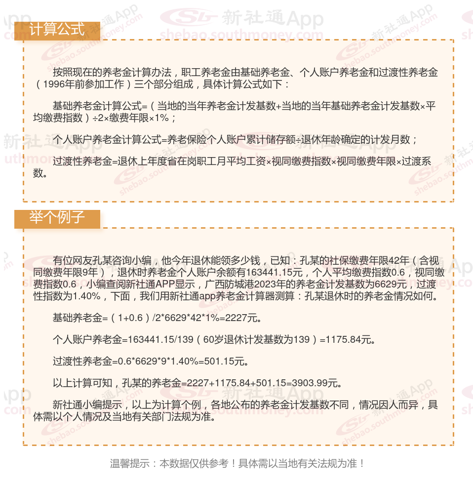 广西防城港退休工资养老金计算方法及公式2024年最新(举例说明)