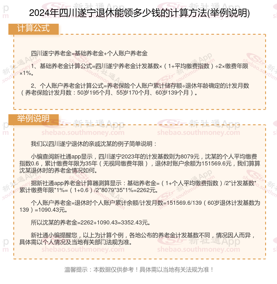 四川遂宁退休工资养老金计算方法及公式2024年最新(举例说明)