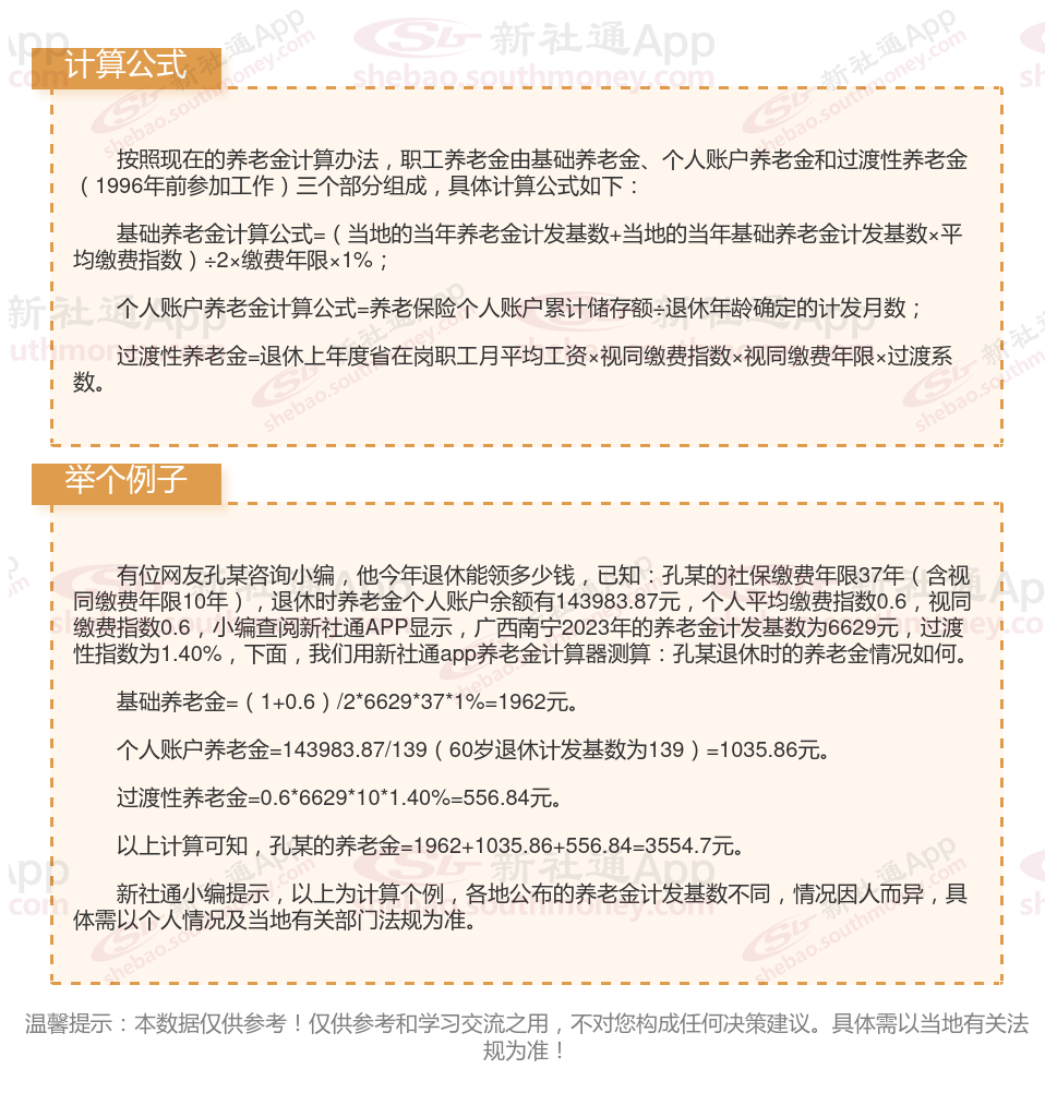 广西南宁退休工资养老金计算方法及公式2024年最新(举例说明)
