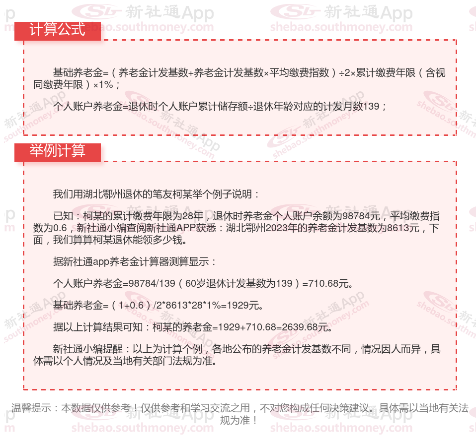 湖北鄂州退休工资养老金计算方法及公式2024年最新(举例说明)