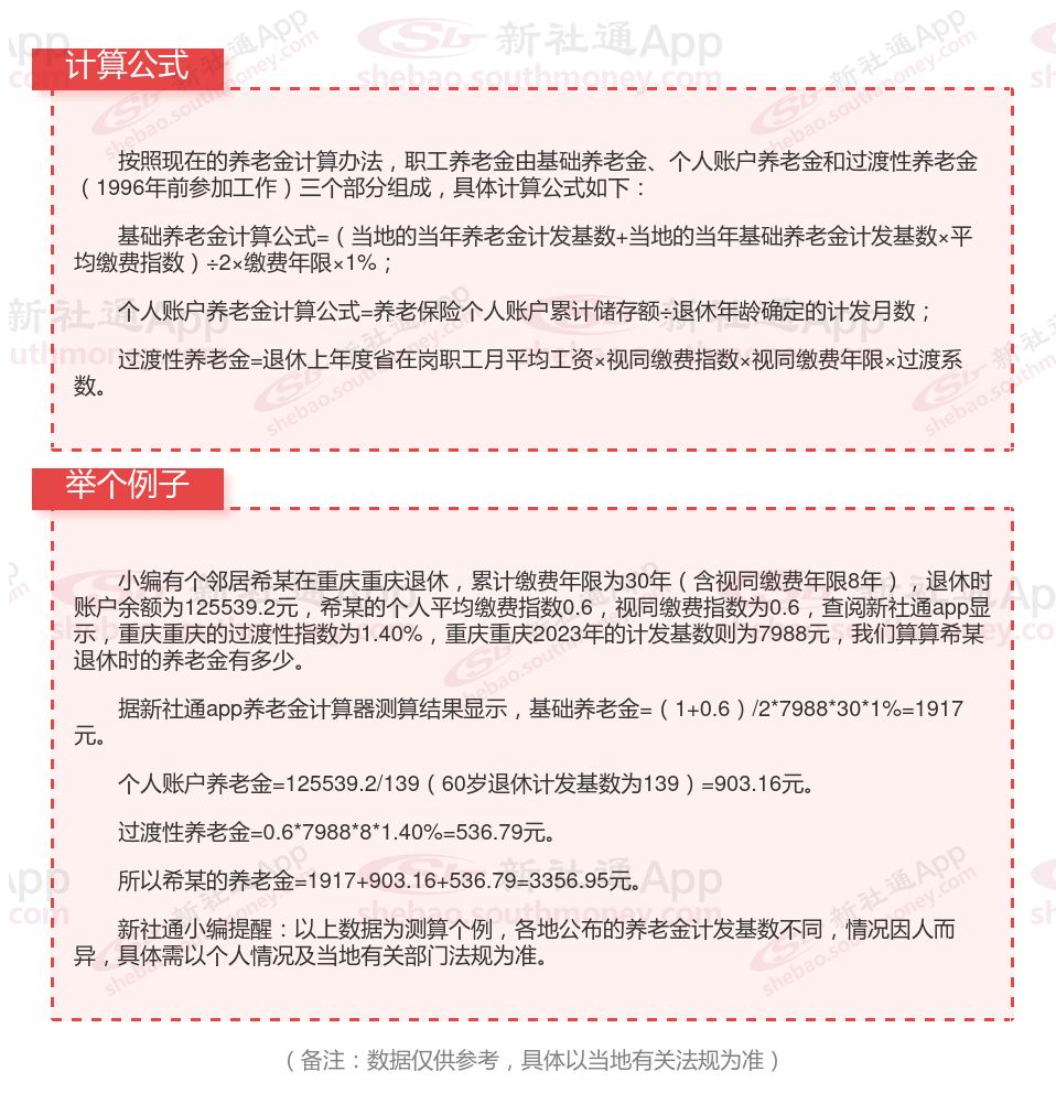 重庆重庆退休工资养老金计算方法及公式2024年最新(举例说明)