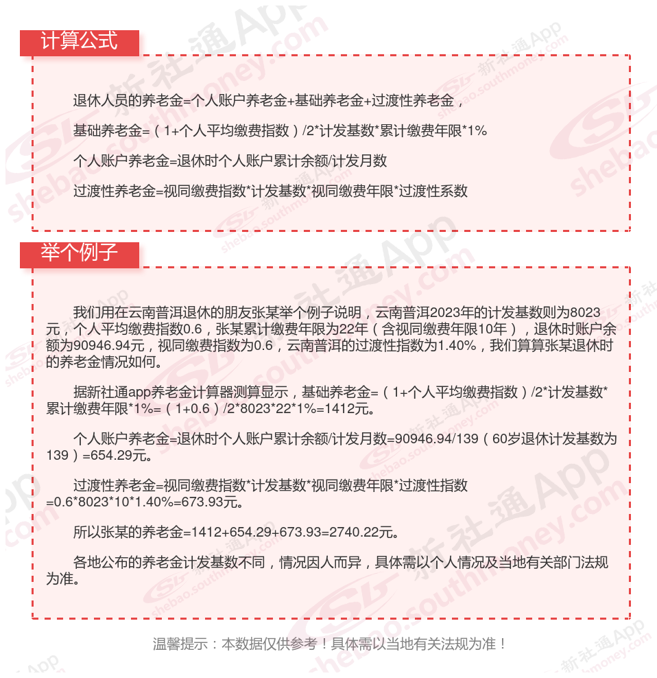 云南普洱退休工资养老金计算方法及公式2024年最新(举例说明)