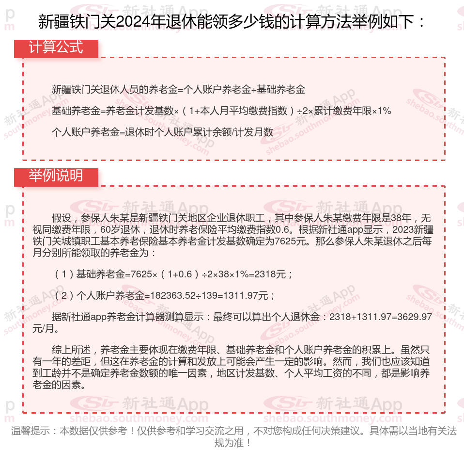 新疆铁门关退休工资养老金计算方法及公式2024年最新(举例说明)