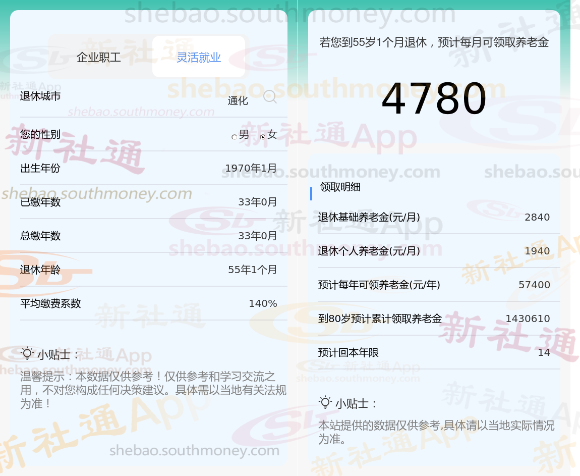 通过上面公式和新社小编根据新社通app-社保缴费查询工具提供的最新数据一起来了解下,通化退休养老金怎么算?