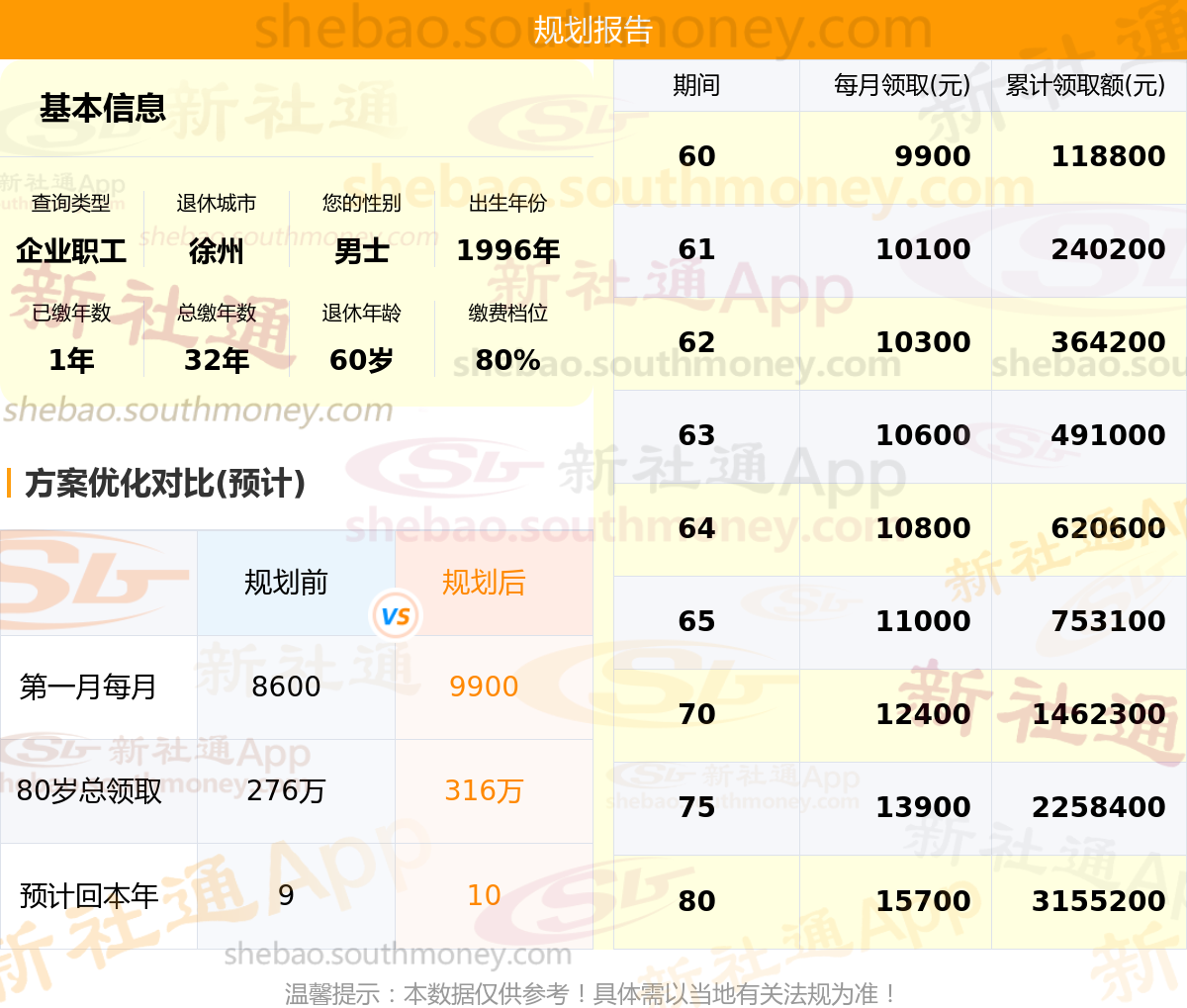 规划前:60岁约领8600元,新社通APP-养老金规划后:60岁约领9900元