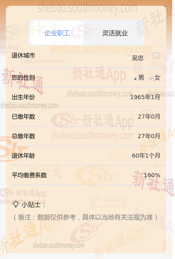 新社通app养老金计算器计算所得:
