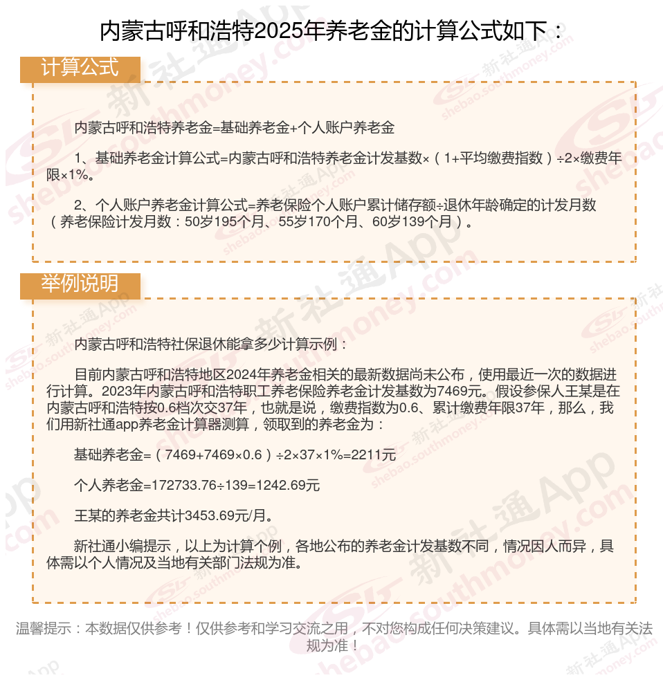 内蒙古呼和浩特退休工资养老金计算方法及公式2024年最新(举例说明)