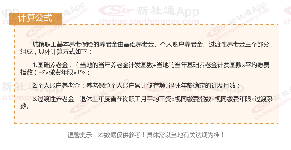 社平工资水平:退休金计算中,基础养老金部分会参考当地上年度的社会平均工资。一般来说,社会平均工资越高,基础养老金的计发基数就越大,从而提高退休金的整体水平。