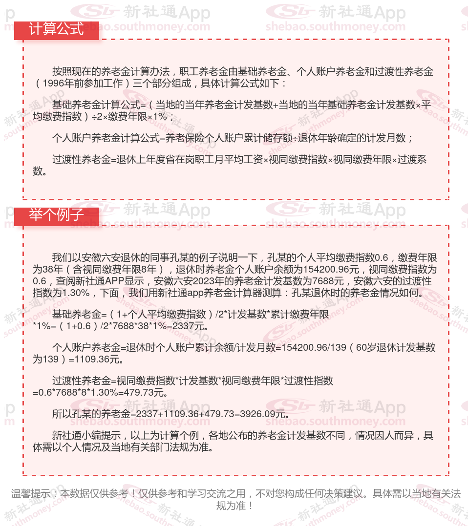 安徽六安退休工资养老金计算方法及公式2024年最新(举例说明)