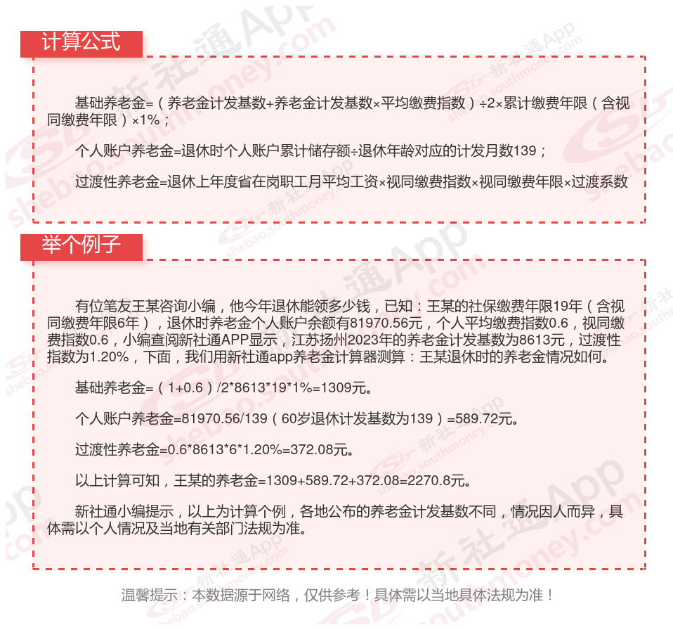 江苏扬州退休工资养老金计算方法及公式2024年最新(举例说明)