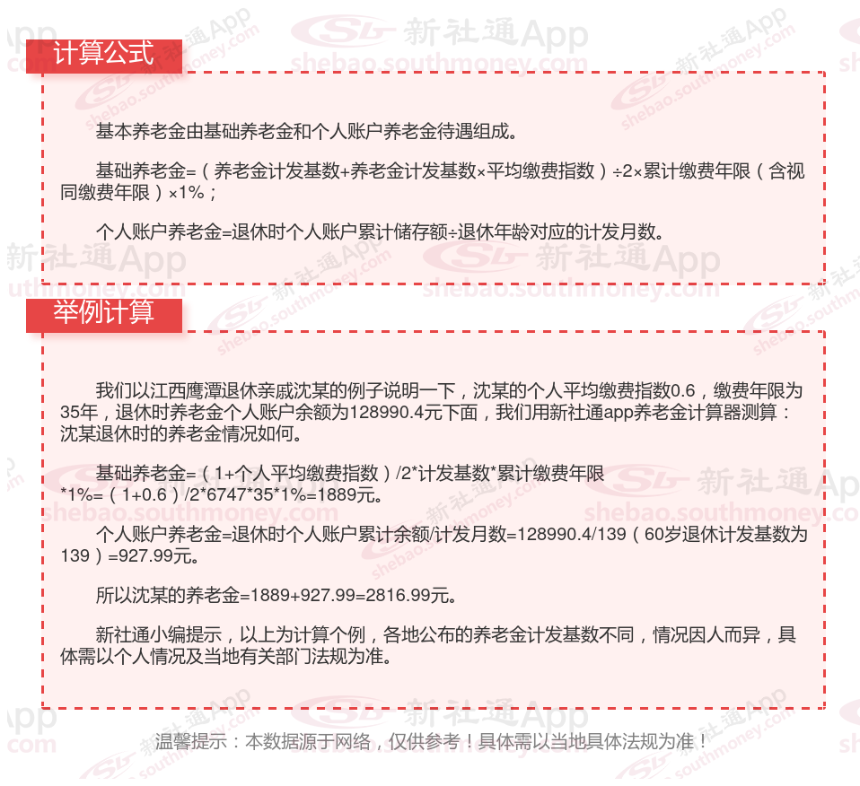 江西鹰潭退休工资养老金计算方法及公式2024年最新(举例说明)