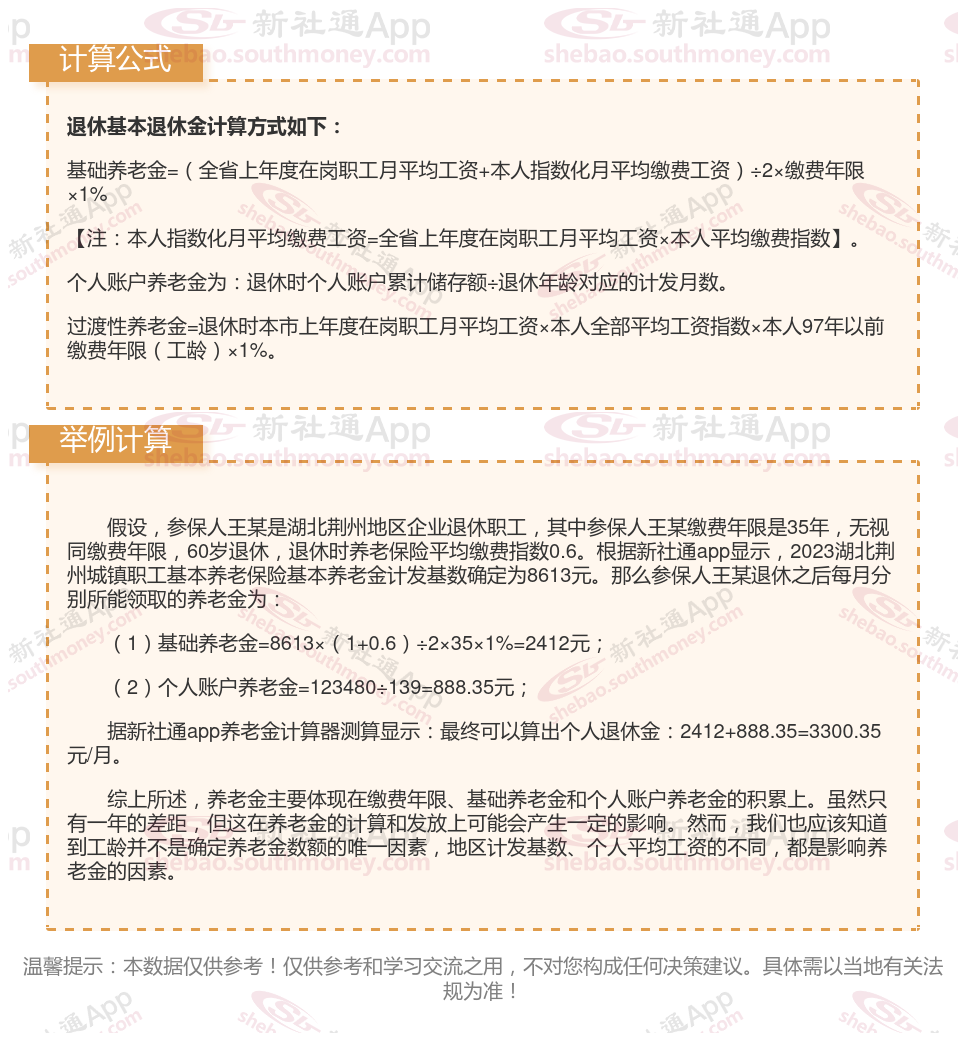 湖北荆州退休工资养老金计算方法及公式2024年最新(举例说明)