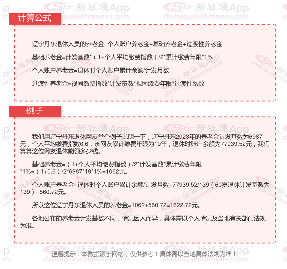 据新社通app显示,辽宁丹东公布2023年1月1日至12月31日企业和事业单位退休基本养老金计发使用的基数为6720元/月。按照新的计发基数计算,实际上基础养老金计发基数应当是6720元,增长了267元。这一公布对于退休人员来说是好消息,但实际能够补发多少钱还需要根据个人情况再进行具体计算。对于没有过渡性养老金的退休人员来说,补发的金额主要与工龄、养老保险缴费指数等因素有关。
