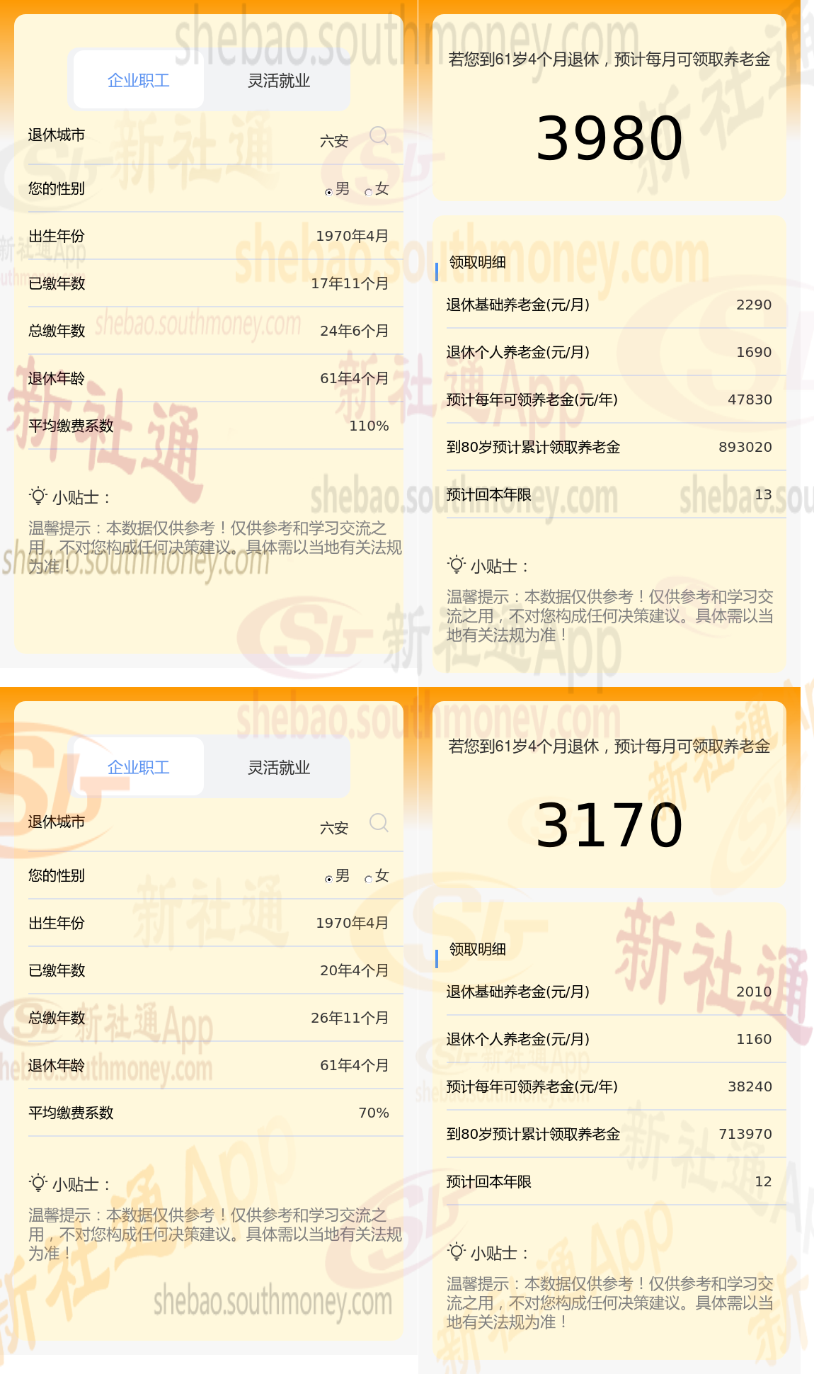 下面新社小编一起来看下,以六安为例(不考虑过渡养老金):