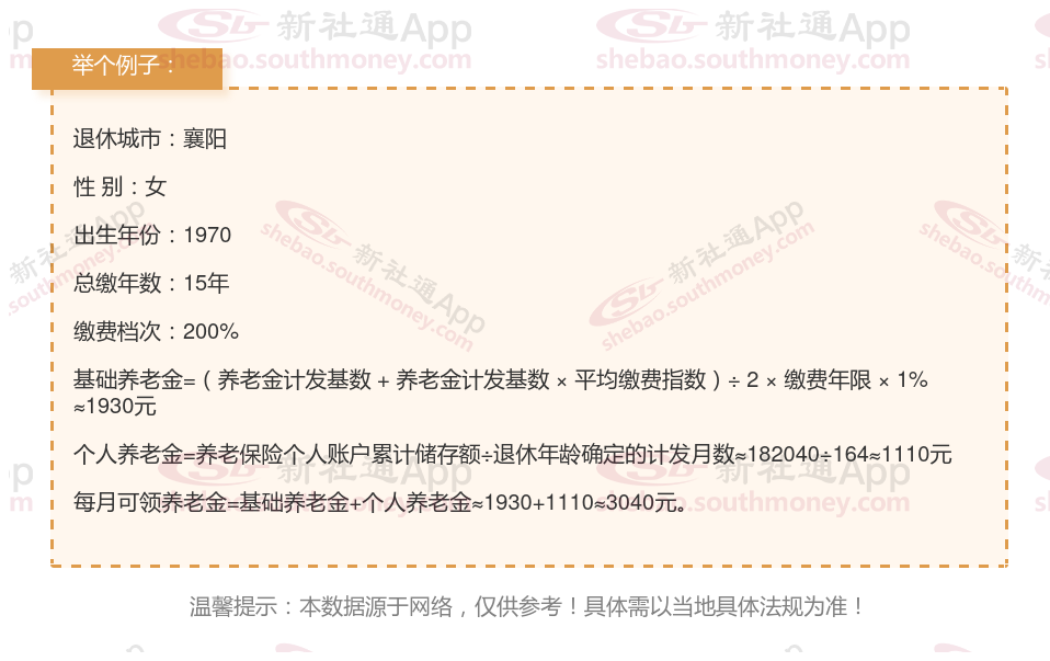 1、基础养老金计算公式=襄阳养老金计发基数×(1+平均缴费指数)÷2×缴费年限×1%。