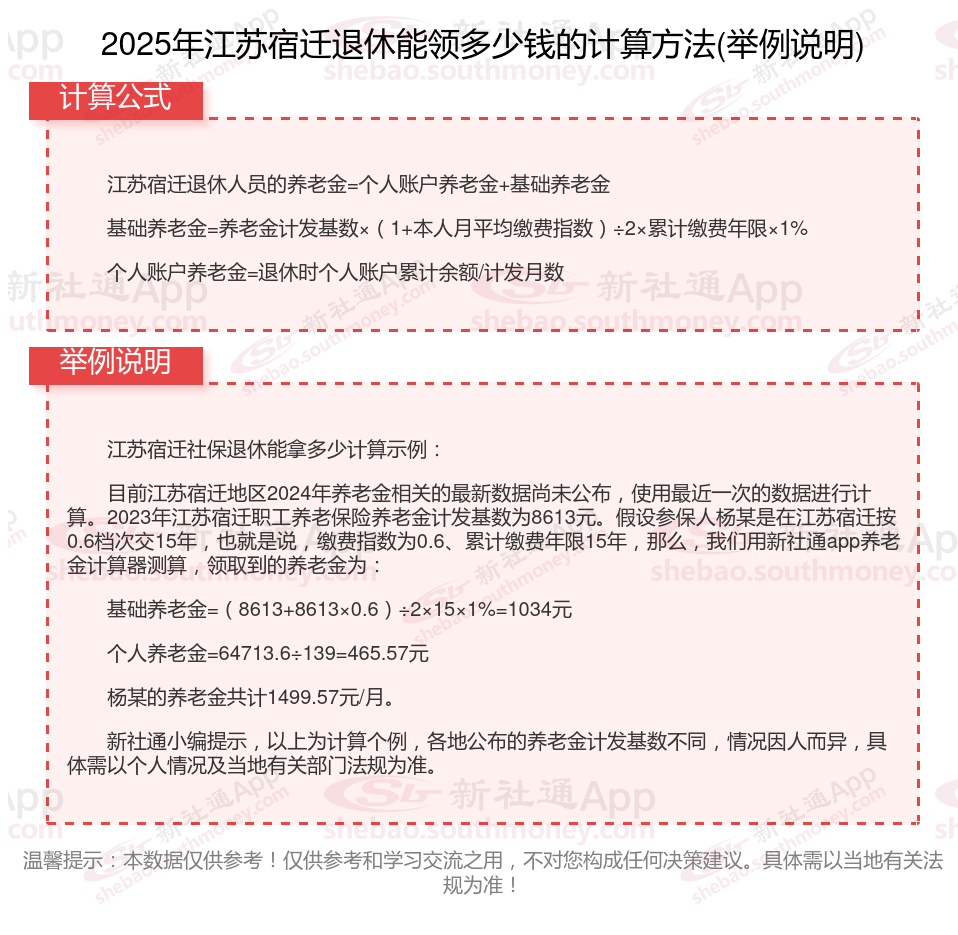 江苏宿迁退休工资养老金计算方法及公式2024年最新(举例说明)